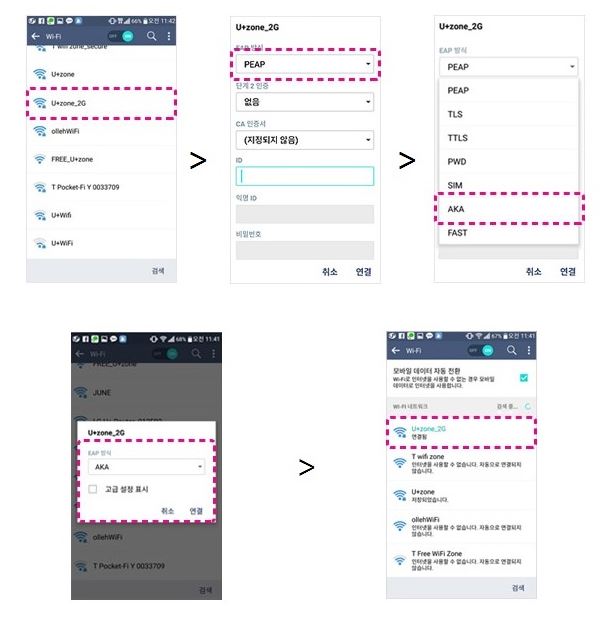 Wifi 설정창 EAP 방식을 AKA 선택 후
