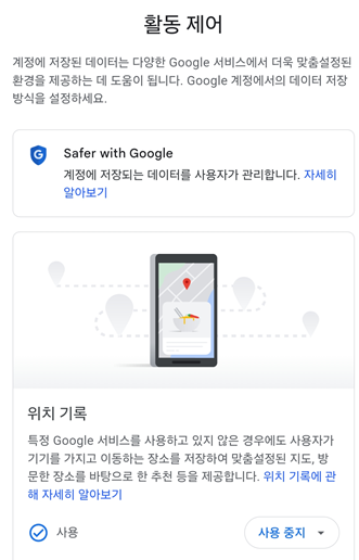 타임라인 설정은 추후에도 활동제어에서 위치기록을 사용 중지할 수도 있으므로 필요에 따라 설정을 변경하셔서 이용하면 되겠습니다.