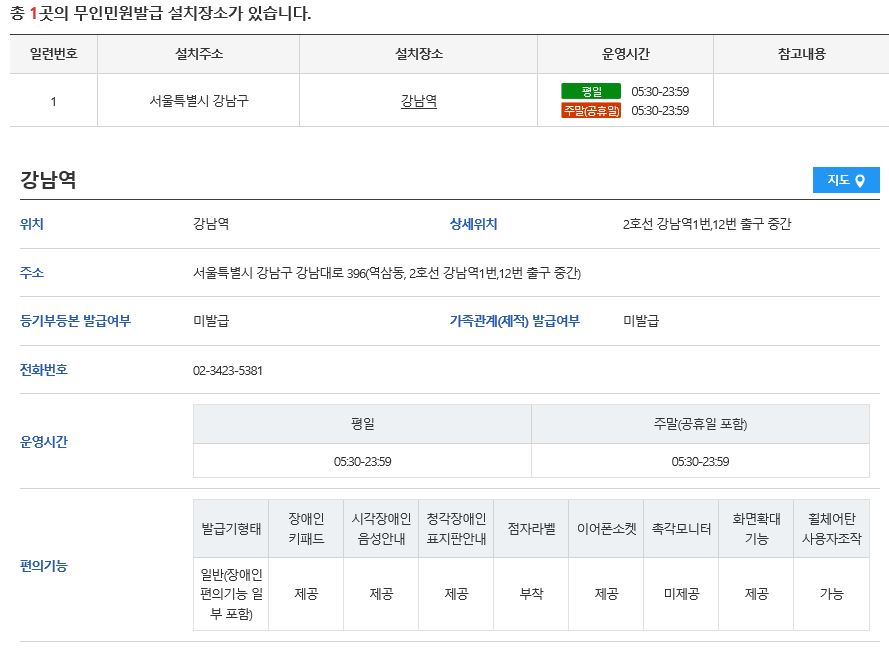 2호선 강남역 무인민원발급기는