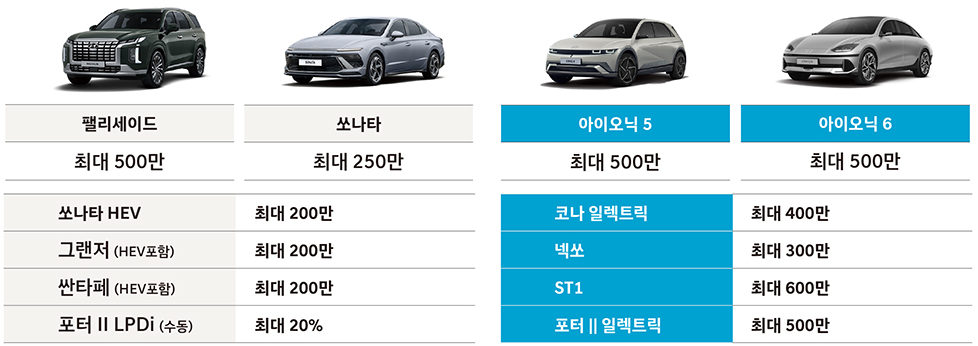 펠리세이트, 아이오닉 5, 아이오닉 6 구매 시 최대 500만 원 할인혜택을 제공합니다.