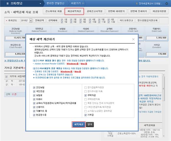 1월 18일부터 이용가능한 연말정산 예상세액을